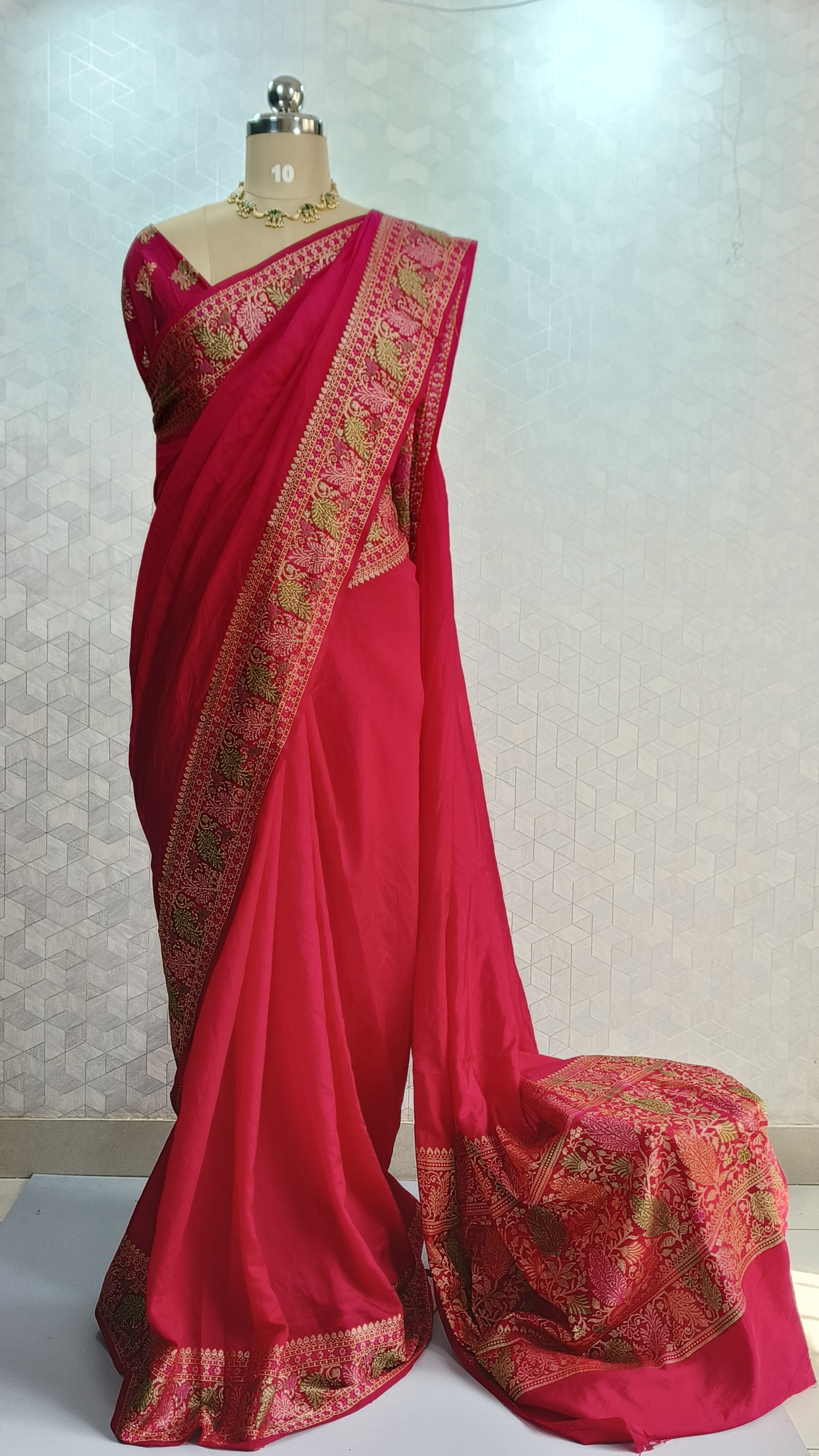 I recently purchased this saree and was highly impressed. The saree and blouse set is soft, elegant, and has a rich look. Delivery was prompt—it arrived the very next day. The packaging was excellent, and I was pleasantly surprised to receive a complimentary necklace and earrings along with the set. Their service is professional and very customer-friendly. I would strongly recommend them to anyone looking for quality sarees.